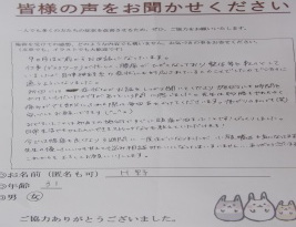 手術だけはしたくない気持ちもあったので、頼みの綱という一心で、お願 いしました。