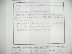 諏訪先生。ご無沙汰しております。それと、施術感想のお返事が遅くなり、 申し訳ありません。