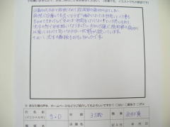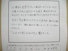 もっと早くこちらに伺えば良かったと思ってます。せっかく良くなってきているので、今後は普段の姿勢等。自分でも気をつていきたいと思います。